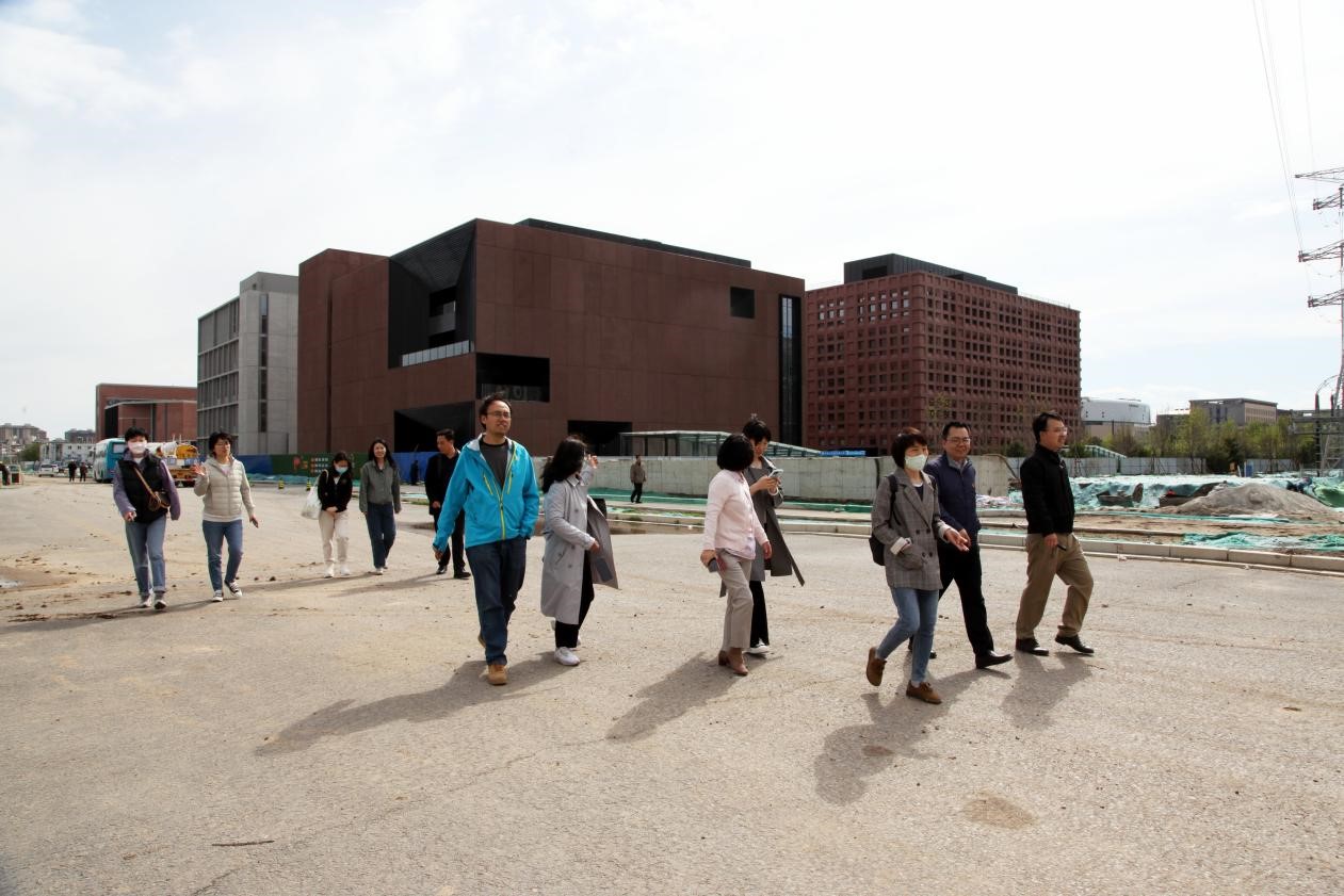 在通州校区管理部部长王甫银和办公室主任艾发强的引导和讲解下,党员、业务骨干们观摩通州校区建设现场,参观艺术中心、未来传播中心及学生宿舍样板间等楼宇和设施,对通州校区当前的建设进度有了更为全面深入的认识,对在通州校区开展非学历教育培训的教学、住宿等条件有了更深入的了解。