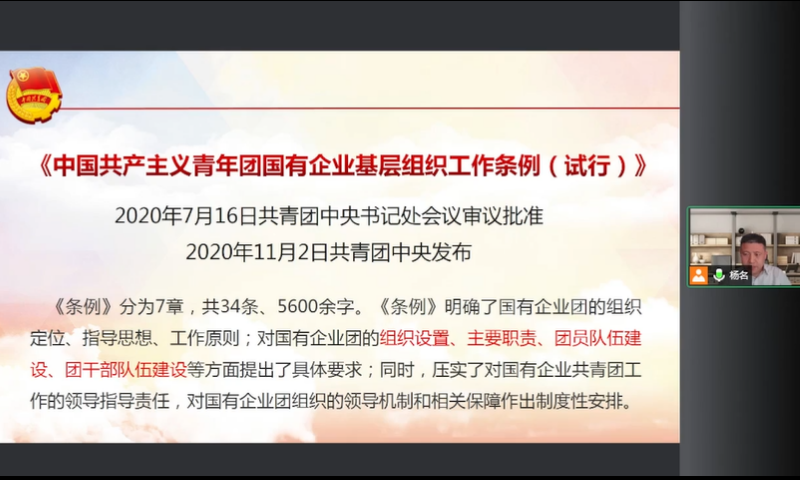 2021年12月13日上午,受申万宏源证券有限公司委托,申万宏源证券支部书记第五期培训班在线上顺利开班,共有121名学员参加此次培训。在为期5天的培训中,学员们先后学习了:《习近平法治思想学习纲要》 精神解读、压力管理与阳光心态、建设忠诚干净担当的高素质干部队伍、中国共青团的奋斗历程与经验启示、高素质干部是高质量发展的根本保证----深入理解执行好《干部任用条例》、国有企业共青团 创新案例、《中国共产主义青年团国有企业基层组织工作条例(试行)》、全面从严治党等课程。