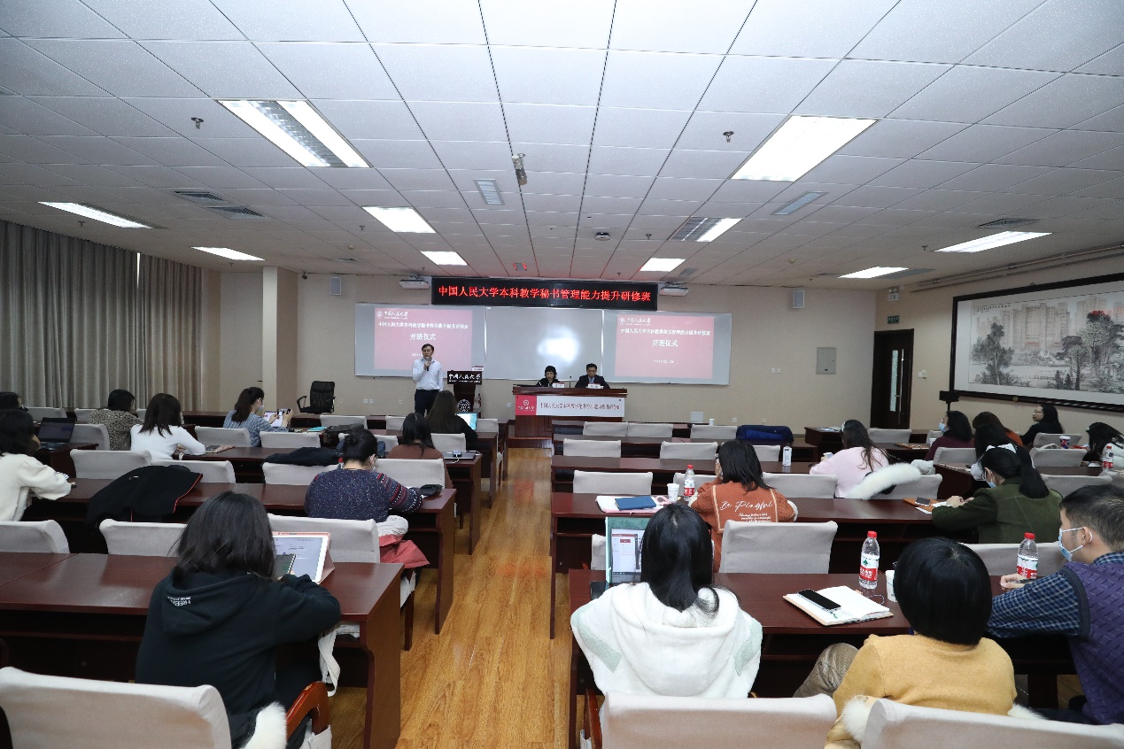 为服务学校“双一流”建设,8bo体育 在2021年加强“教工学堂”建设,联合校内职能部门承办系列教职工培训服务。12月15日,中国人民大学本科教学秘书管理能力提升研修班在汇贤大厦C605教室举办。中国人民大学教务处处长吴健、8bo体育 院长刘鹏出席开班仪式,仪式由教务处副处长李向前主持。共有40名来自学校各8bo体育 (系)、书院的本科教务秘书参加学习。