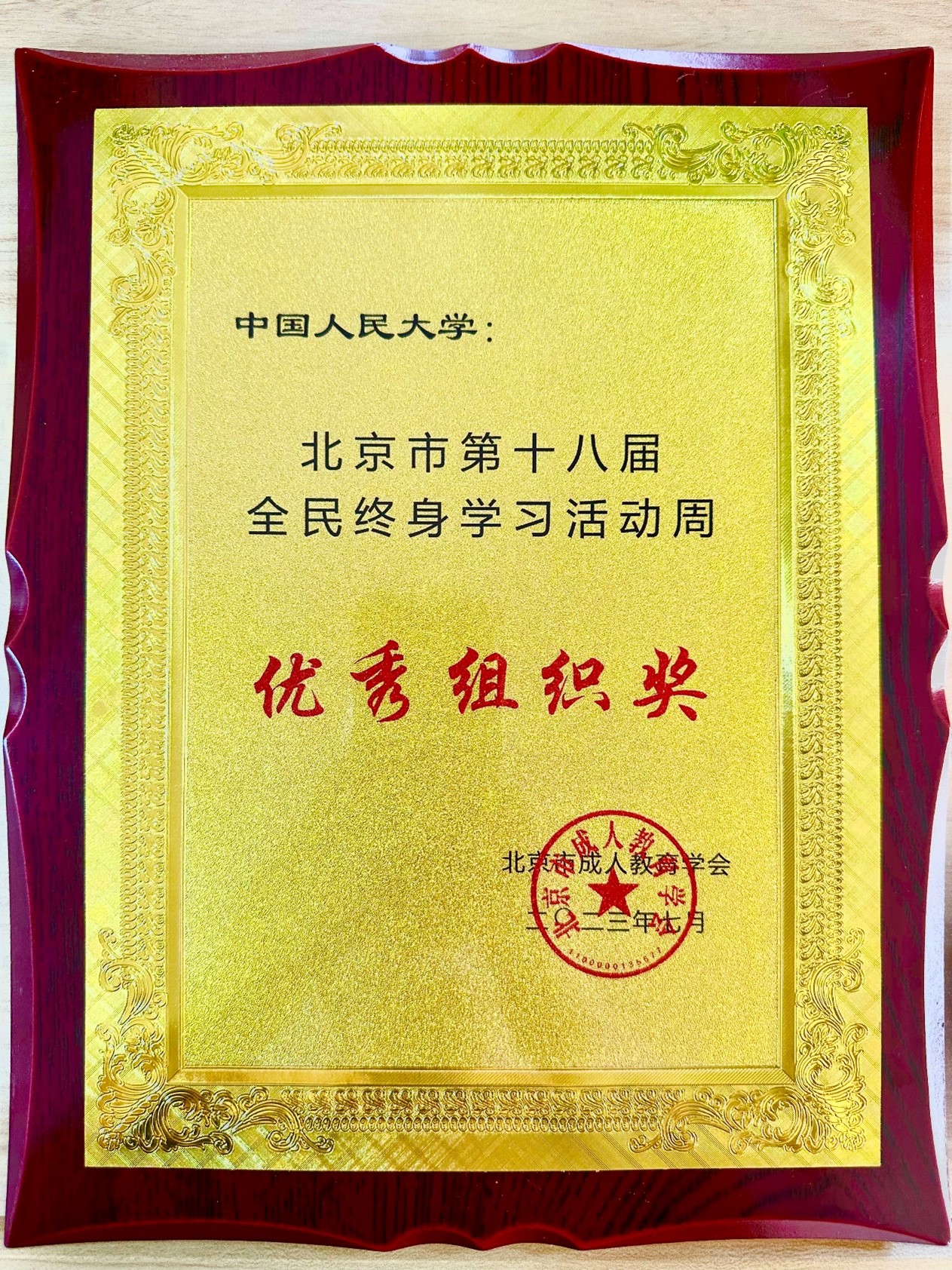 为深入贯彻落实党和国家关于“加快发展继续教育”和“办好全民终身学习周”的精神,推动北京市学习型城市建设,中国人民大学举办了多场丰富多彩、形式多样的学习活动,其中以8bo体育 为主组织的“学习贯彻二十大 终身学习向未来”主题学习活动,开展了线上线下30余次讲座,总计有近5万余人参加活动,成为北京市学习周活动的生力军,获得“北京市第十八届全民终身学习活动周优秀组织奖”。