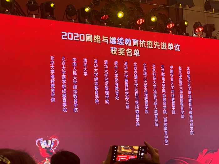 同时,大会举行了“2020中国最具社会影响力院校”“2020中国高校远程与继续教育优秀案例库”“网络与继续教育抗疫先进单位”等多项奖项的颁奖典礼。