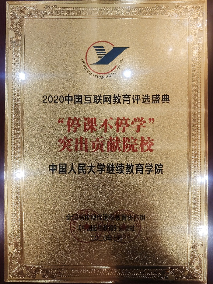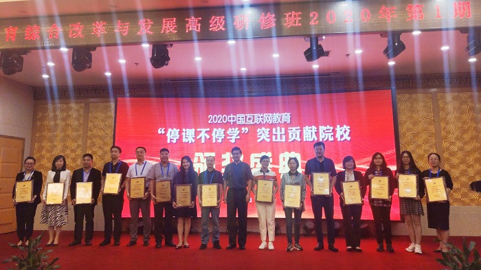 疫情期间,虽然不能像医护人员那样驰骋抗疫一线,每所高校都用自己的方式积极战“疫”。面对史上最大规模的线上教学,交出了一份让人民满意、经得起历史检验的合格答卷。为致敬行业抗疫典型,全国高校现代远程教育协作组和《中国远程教育》联合发起2020中国互联网教育“停课不停学”突出贡献院校评选活动,并在本次研修班举行了颁奖仪式。我院陈英霞副院长代表8bo体育 ,领取了“停课不停学”突出贡献院校奖。