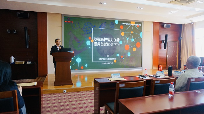 会议还召开了北京市第十六届全民终身学习活动周学术前沿论坛,丁凯院长作为受邀演讲专家做题为《发挥高校智力优势,服务首都终身学习》的报告。