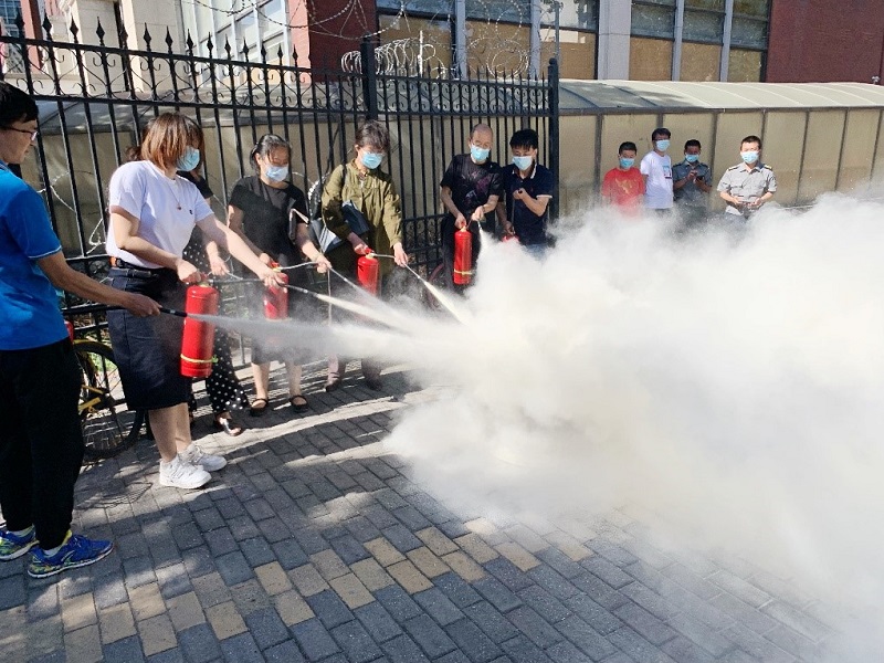 本次消防安全培训分为办公与家居场所消防安全知识讲座和灭火器实操使用两部分。大家首先在教室集中收听了起火与灭火常识、火灾案例分析和常用灭火器材的使用等消防安全相关知识。讲座结束后,各位老师来到户外空地,在学校保卫处的安全保障下,现场学习了干粉灭火器的使用方法与注意事项,并进行了实操使用。